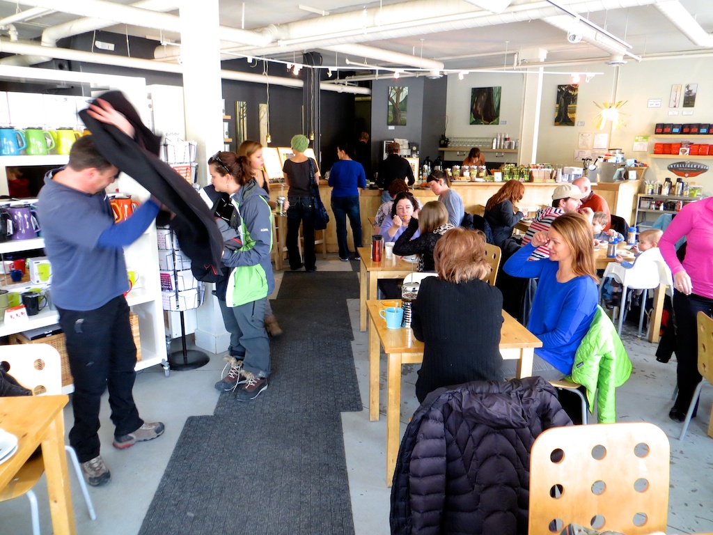 You shouldn’t expect similar freebies, but even at full price, the sandwiches and pizzas are a screaming deal in a tourist town like Canmore. My half chicken salad sandwich, for example, is a satisfying lunch for only $4.50 (including tax), the highlight being the soft, house-made focaccia bread it’s served on. The popular, large cookies are another bargain at $1.25.