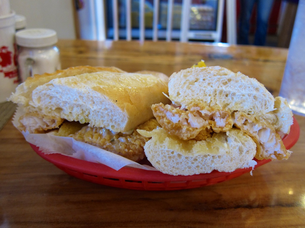 Now, here’s a concept: give customers samples to help them decide what to order. That’s what The Lost Cajun does with its soups. When you sit down in this small Frisco eatery, you’re given three little Dixie cups of gumbo—one a Gulf shrimp and crab in a dark roux and another a spicy chicken and sausage—along with my favourite, a creamy shrimp and lobster bisque with a mild bite. Then, to cover all the bases for you readers, I actually switch gears and order a breaded and fried catfish po boy, a crunchy treat inside a garlic-buttered mini French loaf.