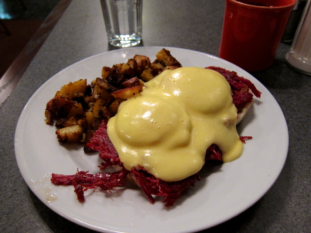 Eggs Benedict on a mountain of corned beef at Creekside Cafe & Grill. Yum.