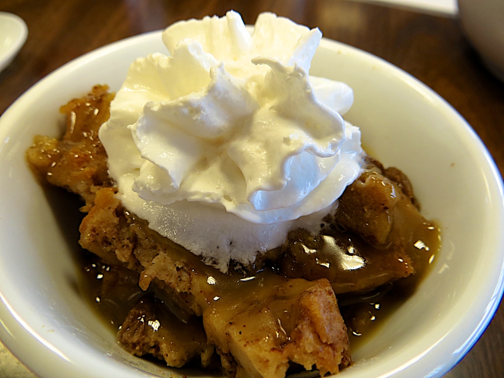 You’ve got to try the cinnamon-raisin bread pudding, from an old family recipe