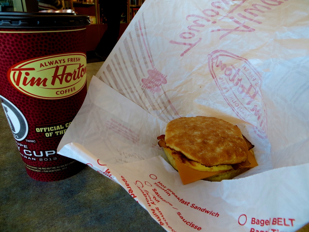 This Canadian juggernaut shows no signs of slowing down. A franchise opening in a small town can put significant pressure on local coffee shops. Morning line-ups are to be expected at the counter and, especially, the drive through; wish they’d address the idling issue. They know their market—”ordinary” Canadians, especially hockey parents and guys in overalls driving pickup trucks.
