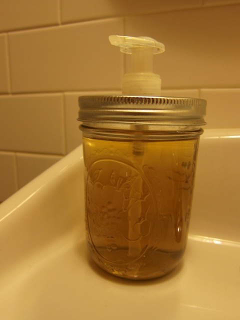 Soap dispensers can have levers that must be pulled up or down or just pushed in. I like the newer style that produces a foaming soap rather than the gel that needs more water to rinse off; some of the foams come with a nice, natural scent.