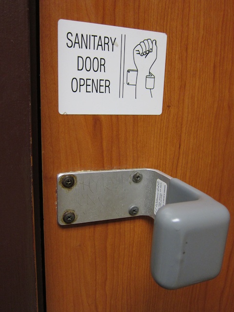 It would also be nice to have some consistency in locks. I’m all right with the sliding locks on cubicle doors, as long as they work. I’m thinking more of the lock on single-occupant bathrooms. Again, there are a variety of ways these doors are locked. The best, and simplest, involves pushing a button on the handle when locking and just pushing the handle down to unlock. No guess work involved.