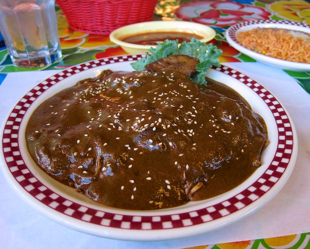 The mole negro is a heaping plate of brown deliciousness over turkey, packing enough heat to start my lips a tingling and my brow perspiring. I scoop up the remaining sauce with warm corn tortillas, scarcely touching the accompanying rice and beans. Believe me, you won’t go hungry here.