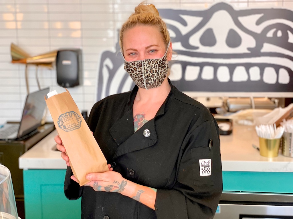 Oddball co-owner Tara Barker flexing her burrito muscles