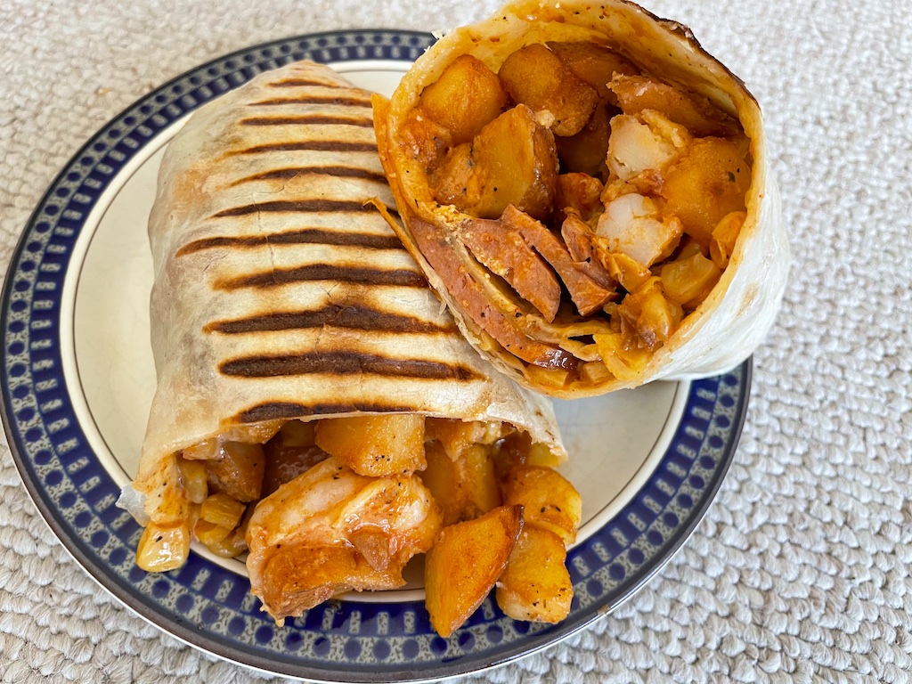 I opt for the Low Country Burrito, boasting the rather unusual combination of jumbo shrimp, Andouille sausage, potatoes, sweet corn, Cajun butter and something called comeback sauce. It’s a holy, two-napkin mess.