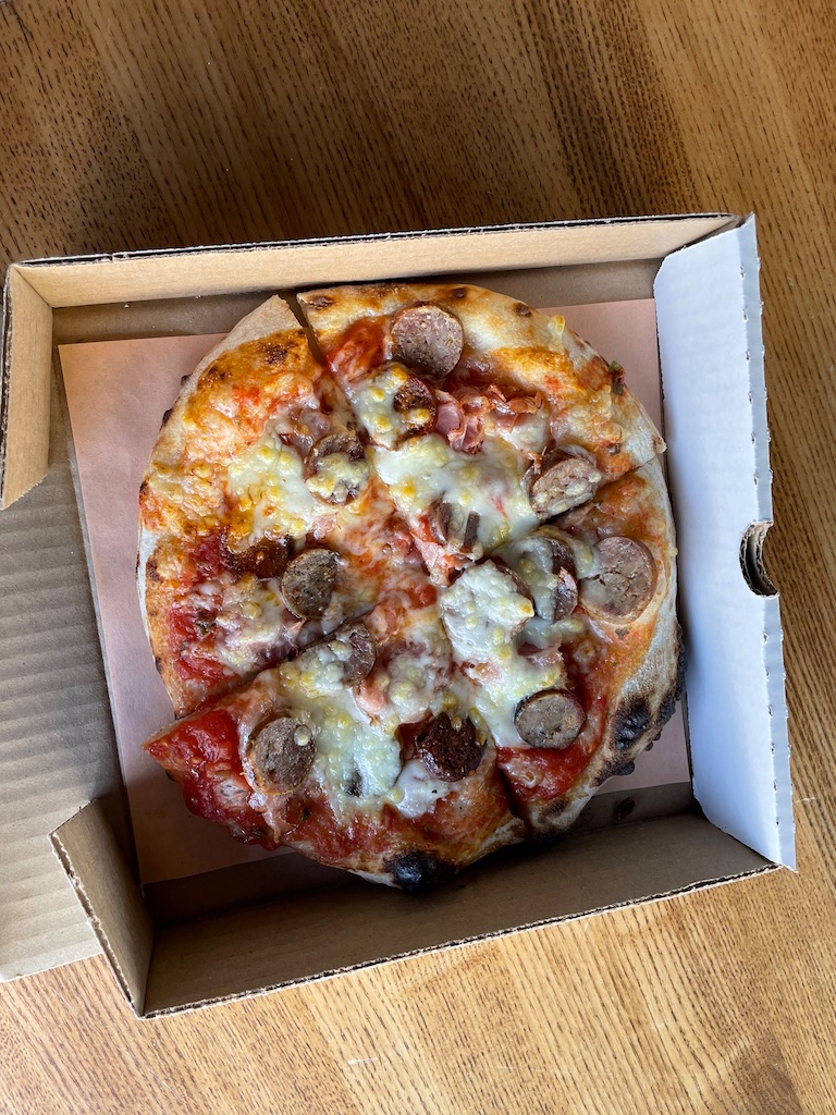 It’s a perfect size for lunch, one of a dozen pizza ensembles on offer, including a breakfast version with a fried egg on top.