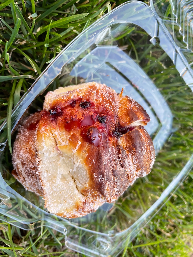 But then my decision is instantly made for me. It’s a mixed-berry cross between a croissant and a muffin, quite naturally called a cruffin. Why have I never seen this before?