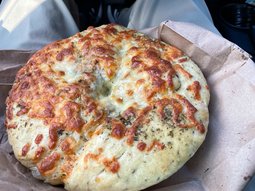 By mistake, I order the large size of the focaccia and cheese bread. No matter. I destroy the whole beast while driving through Banff townsite, each tangled bite inspiring another until there’s nothing left but bread crumbs embedded in the upholstery.