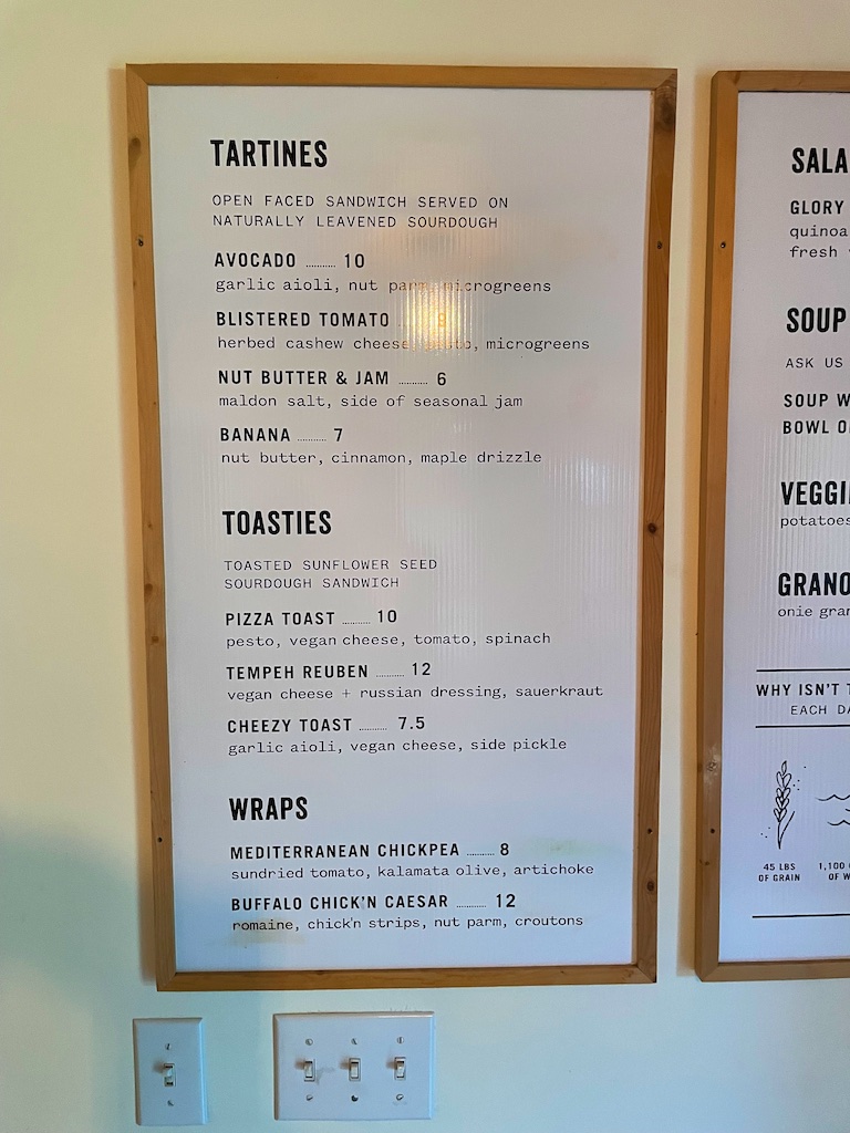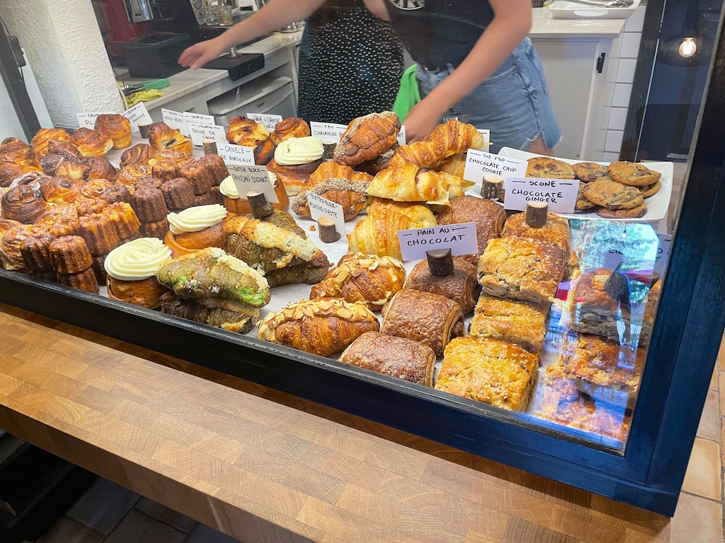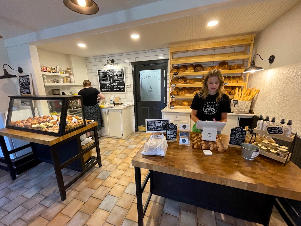 The apple rosemary sourdough bread, soft and chewy, is to die for, as are the almond croissants and the fruit turnovers and danishes. The artisan, sourdough bread roster also includes an oat porridge loaf and one with sprouted grains.