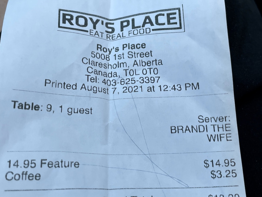 But that’s not the real issue at Roy’s Place, a local institution in the farming community of Claresholm in southern Alberta. Indeed, there’s a bit of a lunchtime lineup in the spacious restaurant when I visit recently. Double indeed, it has gained widespread acclaim since appearing on Canadian TV’s You Gotta Eat Here not that long ago.