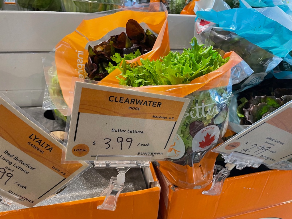 Sunterra’s nine Alberta grocery stores are also offering local veggies—like fabulous heads of lettuce from other local producers like Lyalta Gardens and Clearwater Ridge.