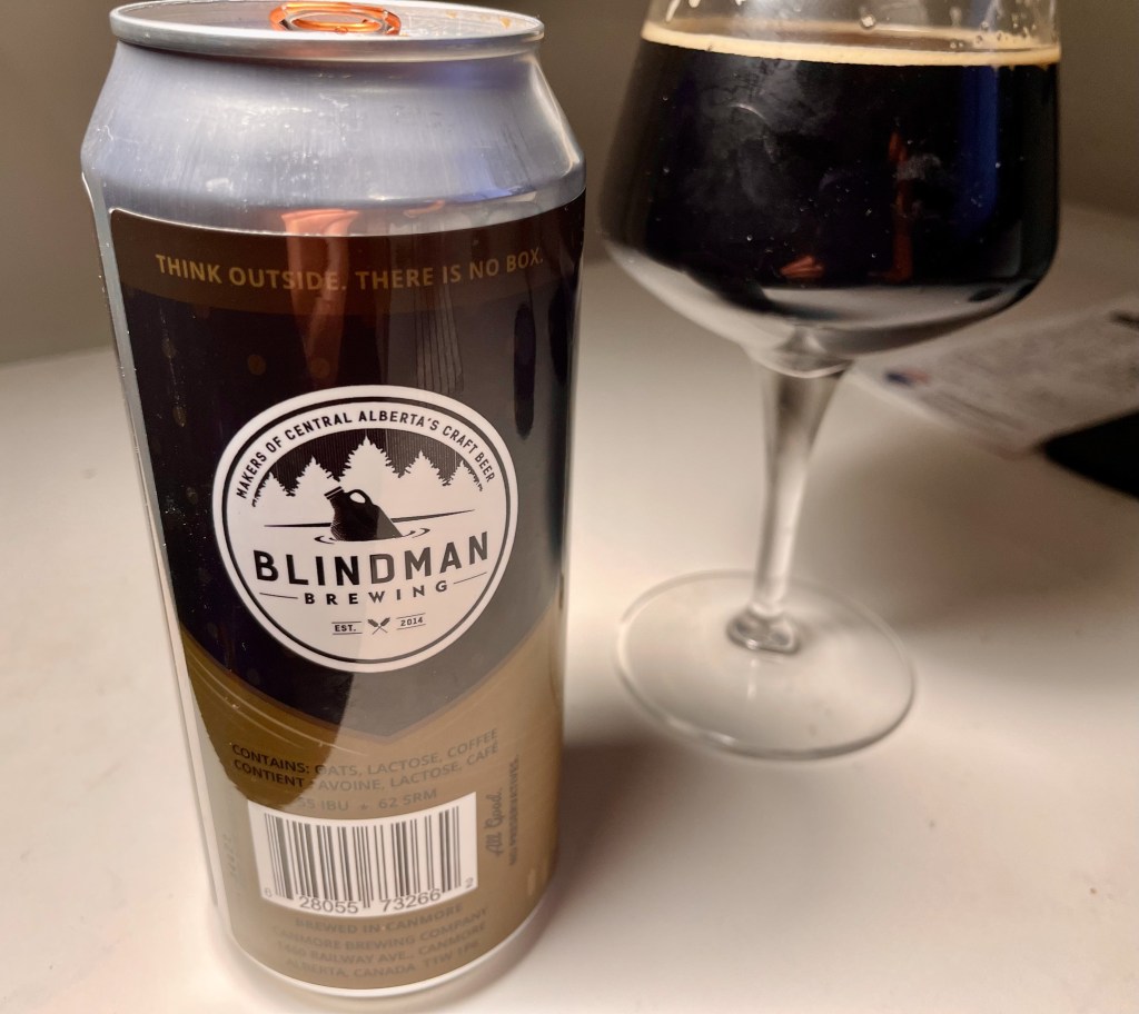 Not surprisingly, it’s labelled a “strong beer”, weighing in at 8.5% alcohol. In the brewers’ words, it contains a “truckload of roasty, toasty and chocolatey malts from Red Shed Malting (Red Deer County) and an overzealous dose of freshly roasted Mocha Java coffee from Eclipse Coffee Roasters” (Canmore).