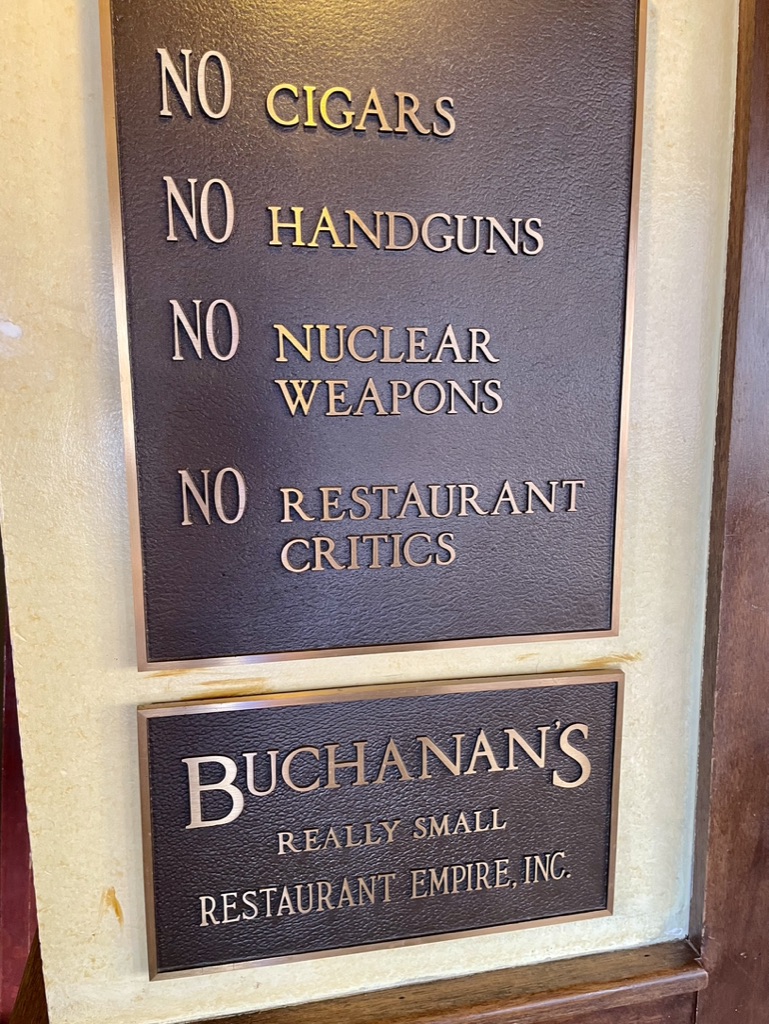 While Buchanan’s has built its reputation on its beef and extensive lists of Scotch and wine, it’s the succulent burger and a pint of house ale that keeps bringing me back.