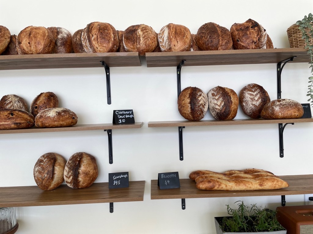It offers a wide range of baked goods, from croissants and Earl Grey scones to loaves of sourdough bread, bagel sandwiches (starting at $12) and high black forest cakes.