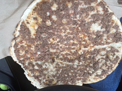 Now that I think about it, a good pita pie is a poor man’s pizza, costing about one quarter the price of an upscale, thin-crust pie. So why not also check out the longstanding Village Pita Bakery in the city’s northeast, where you can grab a pizza-sized meat pie for only $5.25.