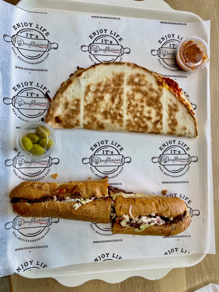 Doughlicious does a lot of things well. First and foremost, it’s a northeast Calgary Mediterranean market, selling big bags of fresh-baked pitas, baklava and all manner of Middle Eastern groceries.
