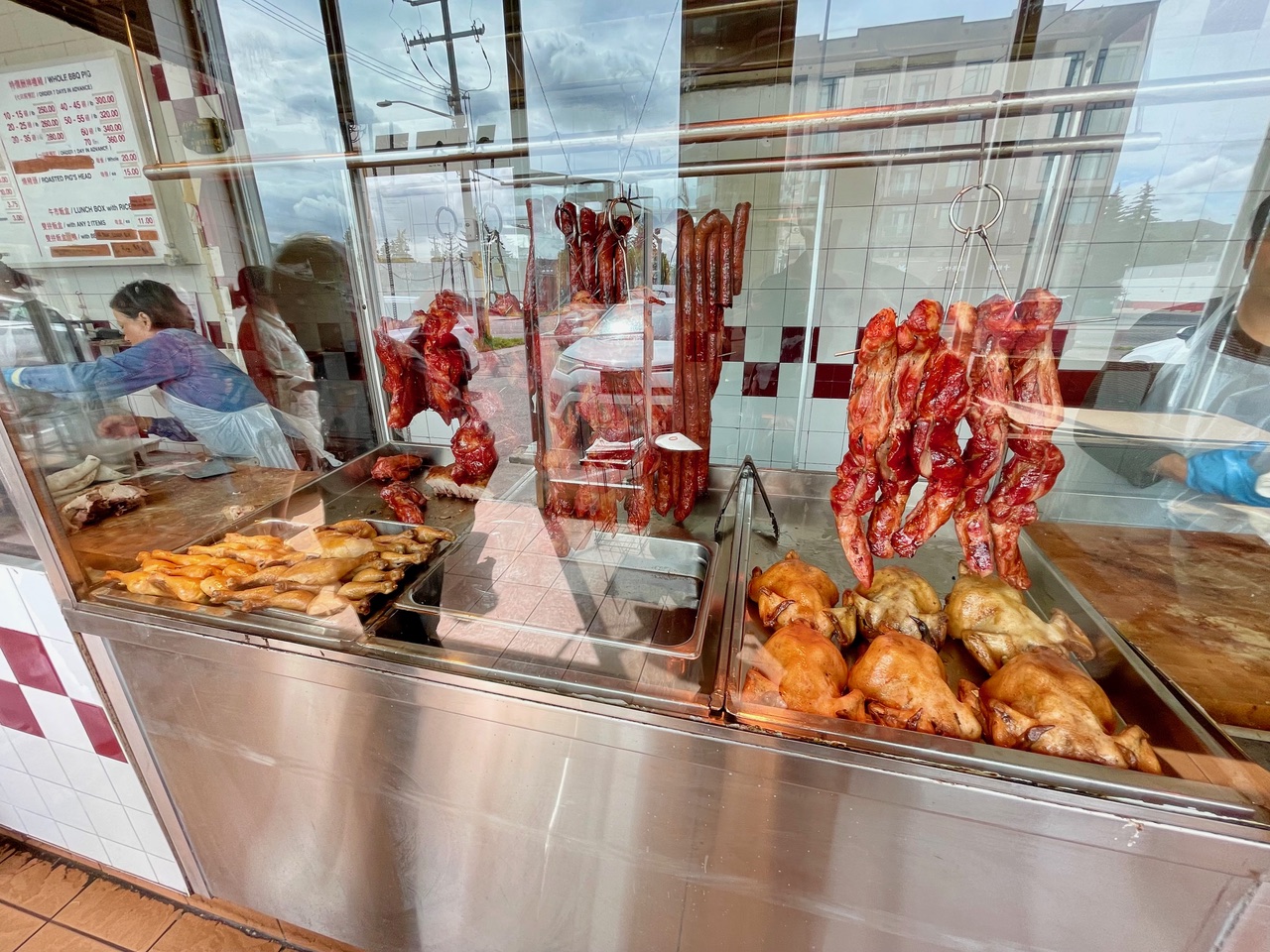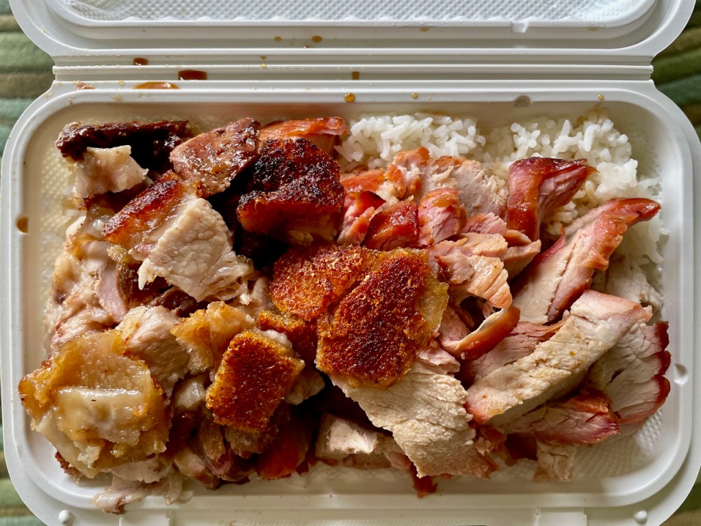 At tiny BBQ Express, in north-central Calgary, you line up in front of a display case of hanging ducks and other meats. If you’re following the standard of ordering the lunch combo, you’re asked to choose two meats (roast pork, barbecue pork, duck etc.).
