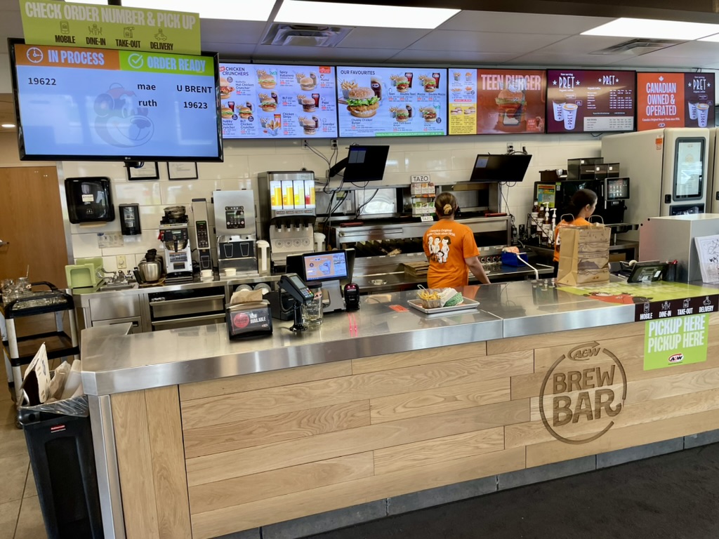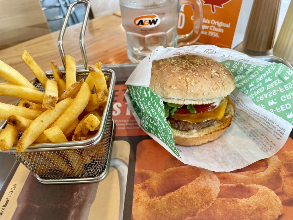 My first impression: McDonald’s Spicy McVeggie Burger is bigger, better and cheaper ($6.29), than A&W’s Masala Veggie Burger ($7.29). Neither is going to fill you up, unless you go for the combo meal deal. So no bargains here, other than McDonald’s decent Americano ($2.19). A&W, however, wins the convivial space award, judging by the much larger crowd of mostly seniors.