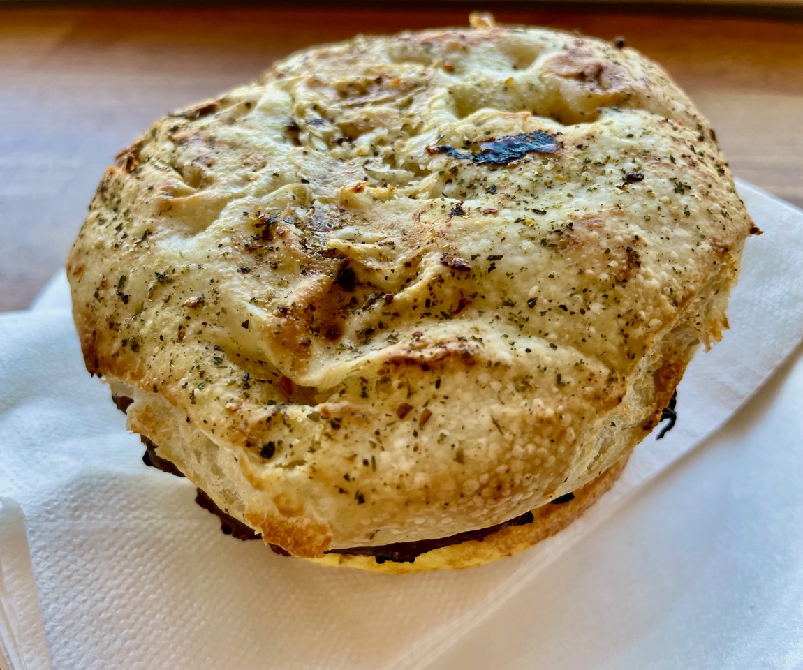 But the real star of these breakfast sandwiches is the focaccia buns they’re cradled in. Inspired by the focaccia he encountered while working as a chef in Italy, Rein bakes a little loaf that’s golden on the outside and pillowy soft on the inside.