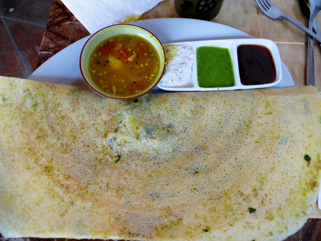 You’ve gotta love a restaurant where the owner greets you at the door, takes your order and then heads to the kitchen to cook it… from scratch. Such is delightfully the case at the new *Nosh Cafe, where co-owners Jag and S. Vermaz both ask if it’s my first time in and patiently explain the South Indian menu. I’m particularly drawn to the novelty, for me, of a dosa—a plate-engulfing, slightly crispy crepe made from rice batter and lentils. My choice of a paneer masala dosa ($10) is loaded with spiced peas, potatoes, corn and cottage cheese cubes (the paneer). A knife and fork is provided, but S. encourages me to break off chunks of the dosa with my hands and dip it in what might be the best part of the meal: small dishes of slightly spicy chutneys, including a creamy coconut mix and a mint-cilantro blend, along with a tamarind sauce. It’s a three-napkin job, washed down with a fragrant mug of milky chai.