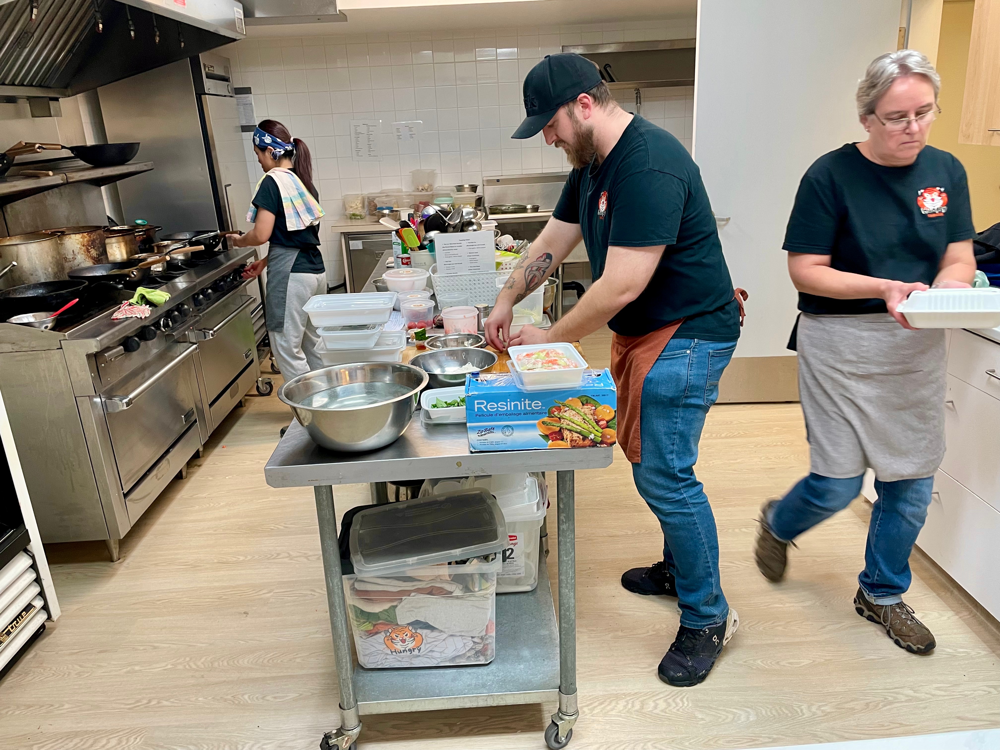 So when I hear about Hungry Thaiger, I hustle down to the Oakridge Community Centre in Calgary’s southwest. That’s where they run a second-floor ghost kitchen, preparing delicious Thai meals for pickup and delivery. It’s a wife-and-husband operation, with Bangkok-raised Somp tending a line of smoking-hot woks and Saskatoon-born Travis assembling everything else.
